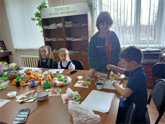 «Пасхальное настроение» Мастер-класс Пасха — один из самых светлых и значимых праздников для православных христиан. Традиции этого дня передаются из поколения в поколение. В Чистый четверг принято красить яйца и печь куличи. Это не просто традиция, а символическое действие. Яйцо символизирует жизнь, а кулич — хлеб, который напоминает о Тайной Вечери. Поэтому эти продукты имеют глубокий духовный смысл. В преддверии святого праздника Пасхи сотрудники библиотеки-филиала № 1 «Библиотека семейного чтения» провели мастер-класс по украшению пасхальных яиц для юных читателей библиотеки. Используя современные бумажные салфетки, детей учили оформлять пасхальные яйца в стиле «декупаж» и окрашивать с помощью ватных палочек, создавая свой собственный, неповторимый рисунок. Дети с увлечением окунулись в народные традиции. Отдохнувшие душой и с идеями по украшению пасхального стола участники мероприятия уходили домой, унося с собой массу положительных эмоций и хорошее настроение.
