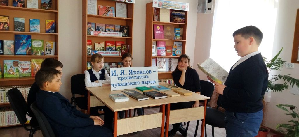 «И. Я. Яковлев - выдающийся чувашский педагог и просветитель» Тематический час В рамках Дня чувашского языка и республиканской Недели чувашского языка и литературы «Чӑваш чӗлхи! Тӑван чӗлхе!» (Чувашский язык! Родной язык!» в Сойгинской сельской библиотеке прошёл тематический час «И. Я. Яковлев - выдающийся чувашский педагог и просветитель». Участники мероприятия послушали рассказ библиотекаря о детских и юношеских годах чувашского просветителя Ивана Яковлева, его творчестве и о Симбирской чувашской школе. Рассказ сопровождался электронной презентацией. Учащиеся познакомится с произведениями Ивана Яковлевича, участвовали в громком чтении и обсуждении рассказов И.Я. Яковлева.