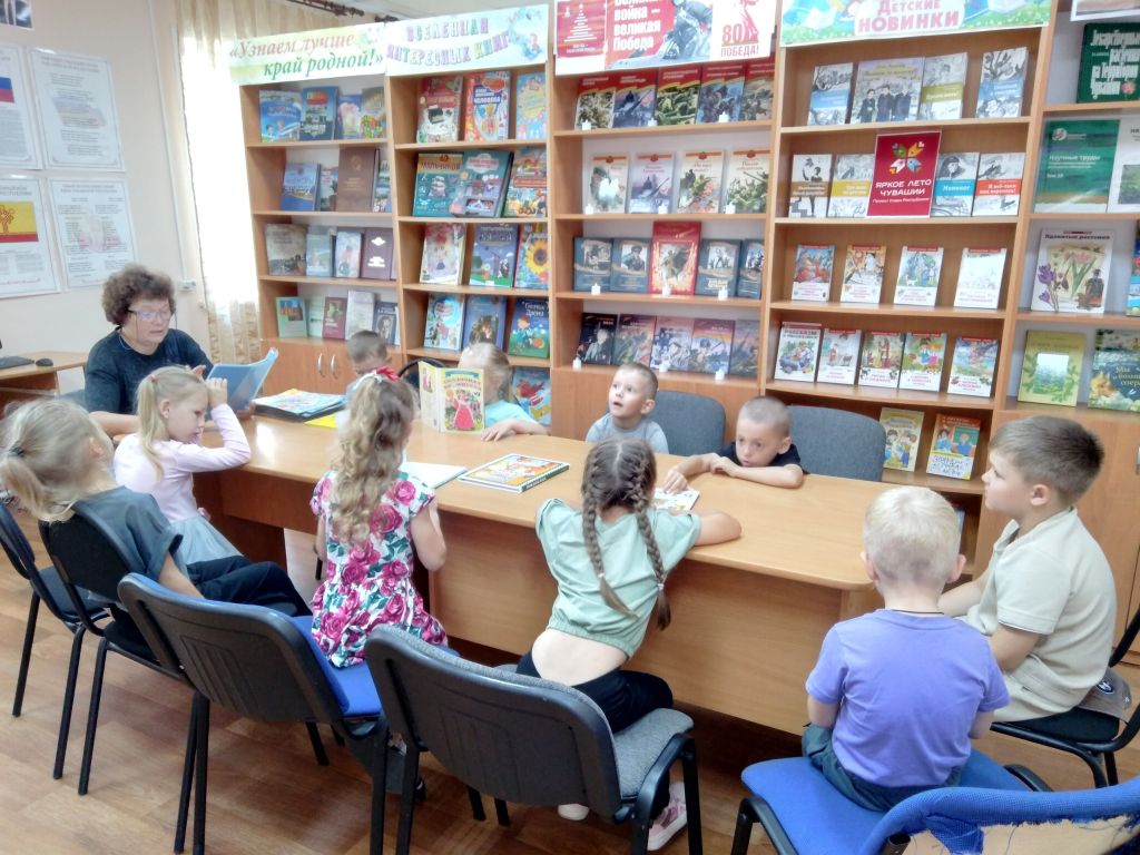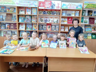 «Книжкин дом» Экскурсия Чуварлейская сельская библиотека распахнула свои двери для дошкольников МАДОУ «Чуварлейский детский сад «Колокольчик». Здесь детей ждал теплый прием. Библиотекарь рассказала ребятам о том, что они пришли в хранилище книг, и что здесь живут разные книжки, начиная с русских народных сказок и заканчивая энциклопедией про динозавров и космос. Ребята с увлечением совершили путешествие по библиотеке, где узнали, что такое абонемент, читальный зал, формуляр, познакомились с многообразием книг, с правилами записи в библиотеку и правилами обращения с книгой, а также с профессией библиотекарь и его обязанностями. Дети с удовольствием рассматривали стеллажи, удивляясь большому количеству книг, стоящих на книжных полках. Библиотекарь познакомила ребят с термином «книжная выставка». С удовольствием юные посетители рассматривали книжки–малютки, книжки-игрушки, книжки-раскладушки, энциклопедии. А в завершение встречи ребята активно отвечали на вопросы игры-викторины «Сказочная деревня». Первое посещение библиотеки прошло интересно, увлекательно и познавательно.